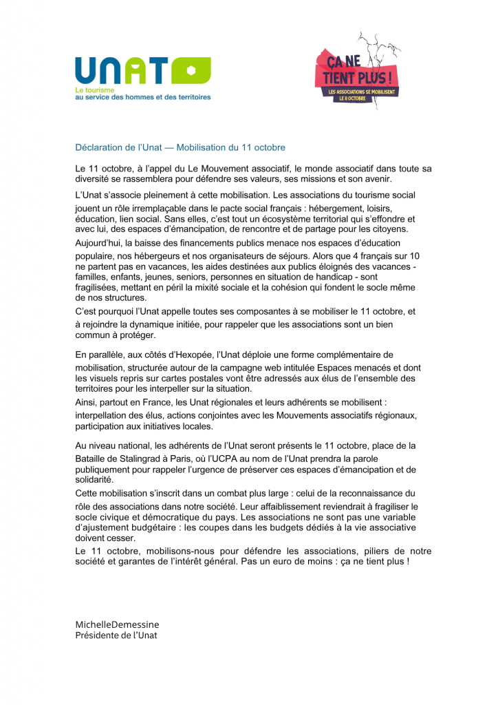 Mobilisation du 11 octobre – Déclaration de l’Unat