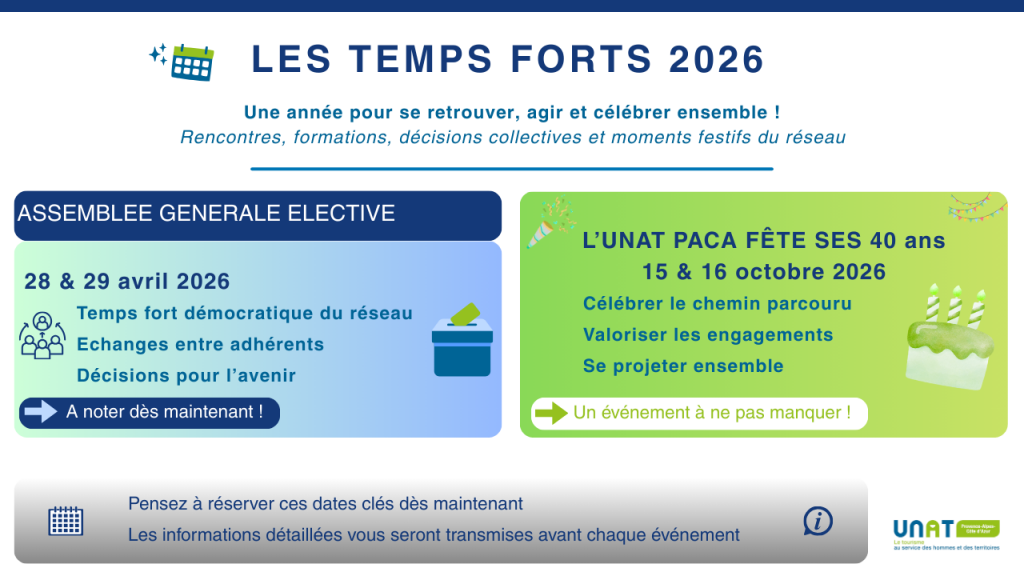 En 2026, l’UNAT Provence Alpes Côte d’Azur propose deux grands rendez-vous à ses adhérents et partenaires.